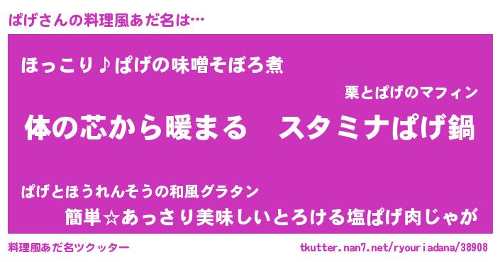 | 男性向けラノベタイトル風あだ名 | 『やはりぱげの青春ラブコメはまちがっている 』 |