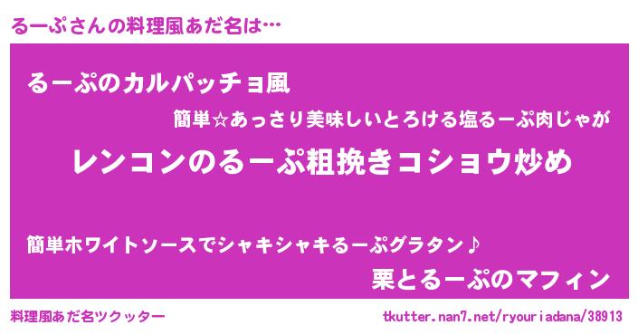 | ヘコむあだ名 | 『るーぷ(遠い目)』『るー太郎』 |