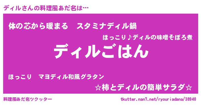 | 男性向けラノベタイトル風あだ名 | 『ディルスレイヤー』『ディルの憂鬱』 |