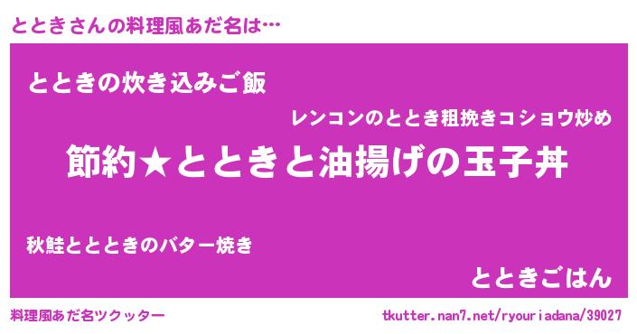 | 男性向けラノベタイトル風あだ名 | 『とときの憂鬱』『トトキスレイヤー』 |