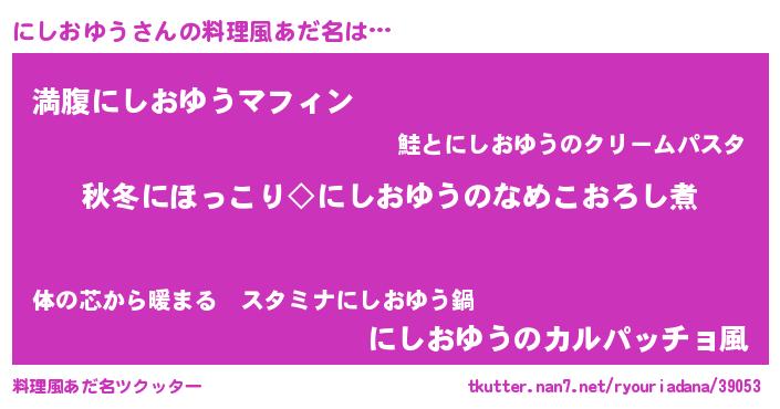 | ヘコむあだ名 | 『にしおゆう(笑)』『酢こんぶ』 |