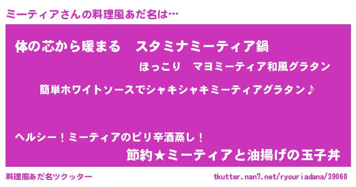 | ポケモン風あだ名 | 『ヒミーティア』『ミーテダネ』 |