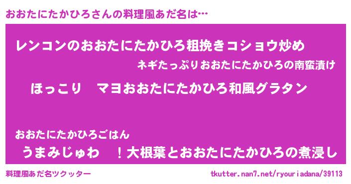 | 意味不明あだ名 | 『住所不定無職おおたにたかひろ(62歳)』 |