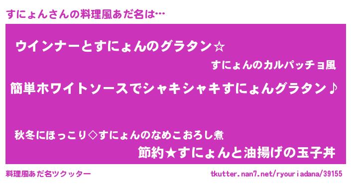 | 男性向けラノベタイトル風あだ名 | 『すにょんの嫁は女の子じゃないと思った?』 |