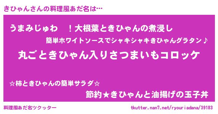| 意味不明あだ名 | 『住所不定無職きひゃん(53歳)』 |
