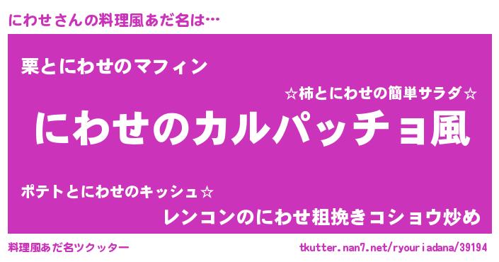 | ポケモン風あだ名 | 『ニーワイ』『ニワゴンZ』『ヒニワセ』 |