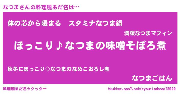 | 男性向けラノベタイトル風あだ名 | 『なつまの憂鬱』『ナツマスレイヤー』 |