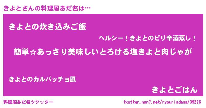 | 意味不明あだ名 | 『永久保存きよと』『つくし科きよと属』 |