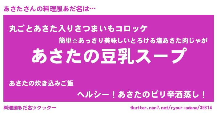 | ヘコむあだ名 | 『あさっぺ』『あさた(震え声)』 |