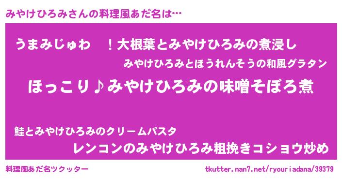 | ポケモン風あだ名 | 『ミヤチュウ』『ミヤケダネ』 |