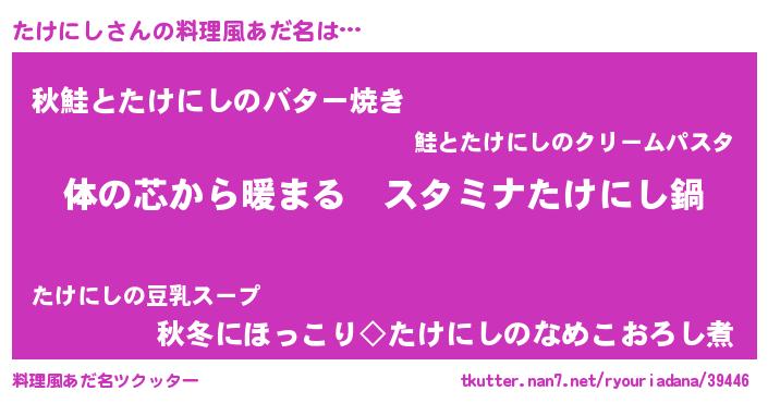 | 男性向けラノベタイトル風あだ名 | 『やはりたけにしの青春ラブコメはまちがっている 』 |