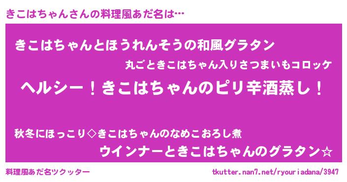 | ヒーロー風カッコイイあだ名 | 『サイバー戦士キコハチャン』 |