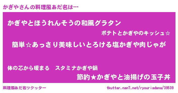 | 意味不明あだ名 | 『永久保存かぎや』『ニラ科かぎや属』 |