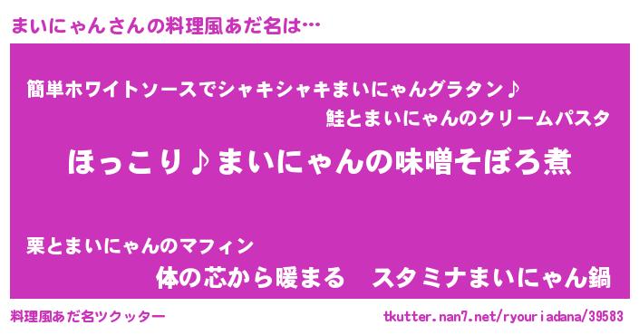 | 男性向けラノベタイトル風あだ名 | 『まいにゃんの憂鬱』 |