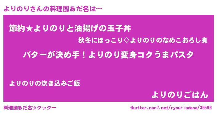 | ヘコむあだ名 | 『よりにー』『よりのり(笑)』 |