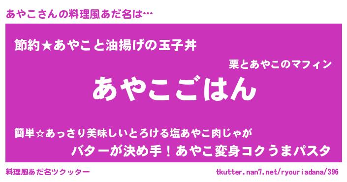 | ヒーロー風カッコイイあだ名 | 『スーパーアヤコ』『愛の使者あやこ』 |