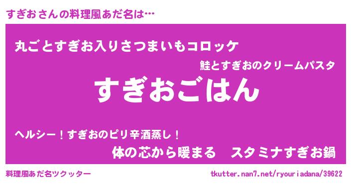 | 意味不明あだ名 | 『エリンギ科すぎお属』『自称すぎお』 |