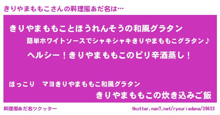 | 男性向けラノベタイトル風あだ名 | 『Re:きりやまももこから始める異世界生活』 |