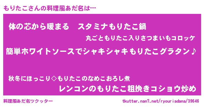 | 意味不明あだ名 | 『とにかく怪しいもりたこ』 |