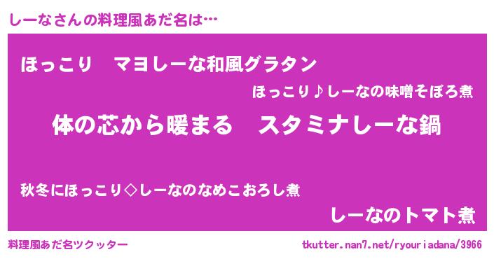 | 男性向けラノベタイトル風あだ名 | 『やはりしーなの青春ラブコメはまちがっている 』 |