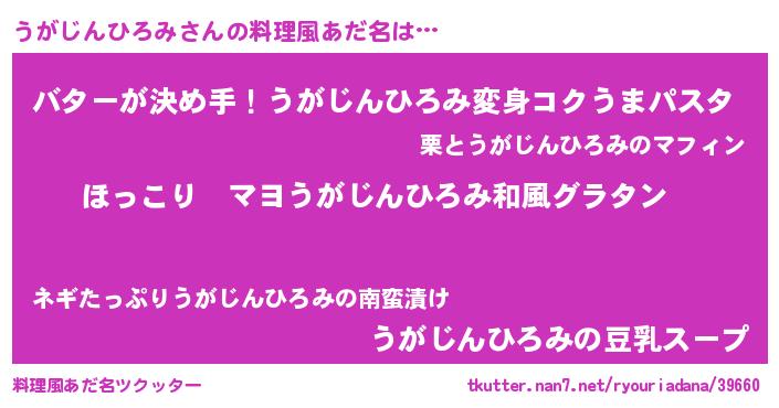 | 男性向けラノベタイトル風あだ名 | 『この素晴らしい世界にうがじんひろみを!』 |