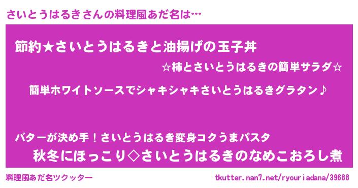 | 男性向けラノベタイトル風あだ名 | 『さいとうはるきの嫁は女の子じゃないと思った?』 |