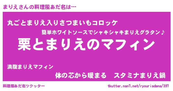 | ヒーロー風カッコイイあだ名 | 『仮面マリダー』『ウルトラまりえマン』 |