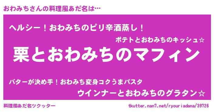 | ヘコむあだ名 | 『豆乳』『おわぷりん』『おわふぇ~』 |