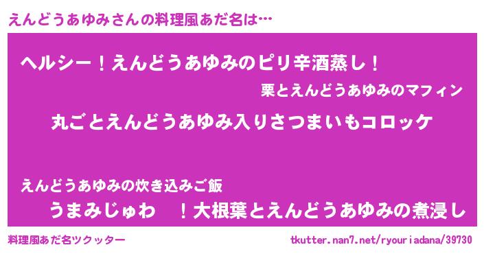| 意味不明あだ名 | 『住所不定無職えんどうあゆみ(98歳)』 |