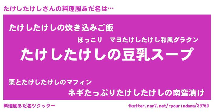 | 意味不明あだ名 | 『とにかく怪しいたけしたけし』 |