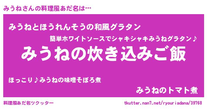 | ヒーロー風カッコイイあだ名 | 『愛の使者みうね』『黄金騎士ミウ』 |