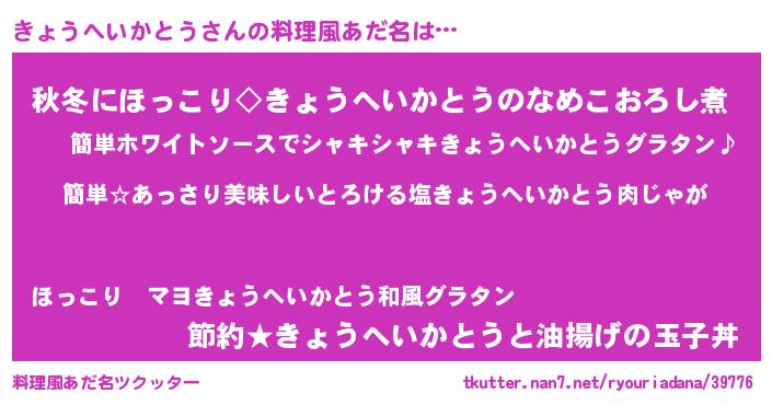 | 胡散臭い通販商品みたいなあだ名 | 『前代未聞の健康食品…その名も「きょうへいかとう」』 |