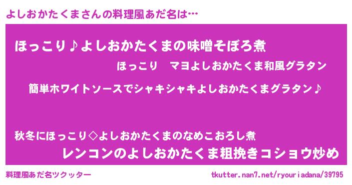 | ポケモン風あだ名 | 『ヒヨシオカタクマ』『ヨシチュウ』 |