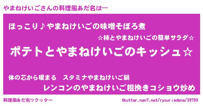 | 男性向けラノベタイトル風あだ名 | 『やまねけいごの嫁は女の子じゃないと思った?』 |