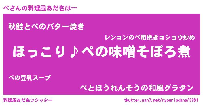 | ピコ太郎風あだ名 | 『ペコ十郎』『ピコペ郎』『ペ四郎』 |