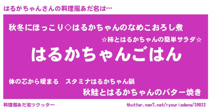 | 胡散臭い通販商品みたいなあだ名 | 『来世でも幸せになれる健康食品…その名も「はるかちゃん」』 |