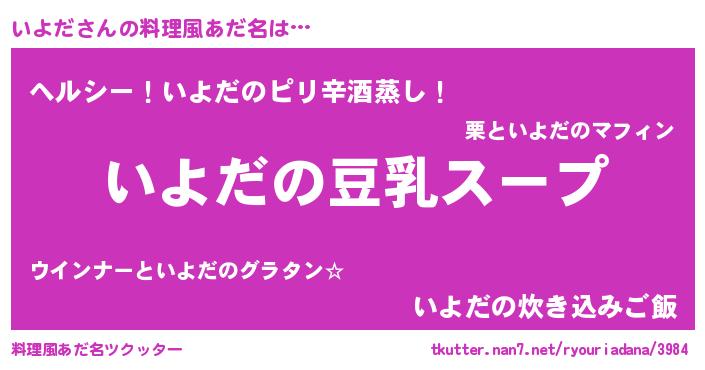 | 意味不明あだ名 | 『とにかく怪しいいよだ』『自称いよだ』 |