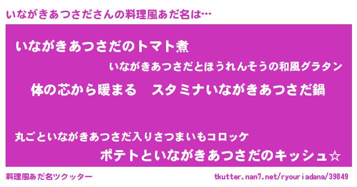 | 女子向けラノベタイトル風あだ名 | 『いながきあつさだの雑貨屋さん』 |