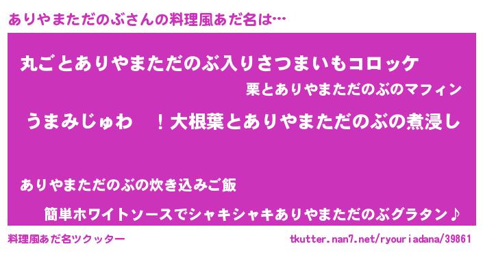 | 欧米人風あだ名 | 『ありやまただのぶクリステル』 |