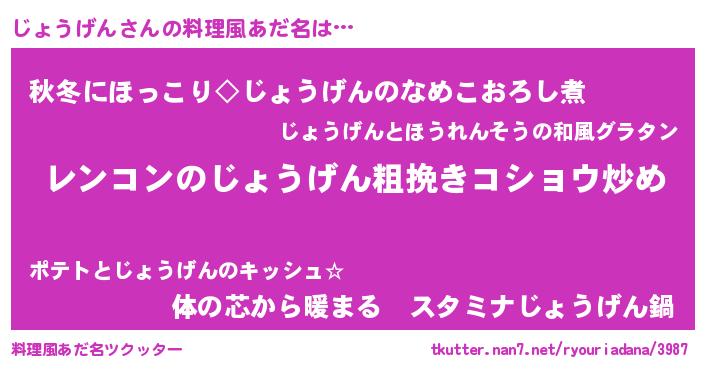| 意味不明あだ名 | 『自称じょうげん』『ペロリンじょうげん』 |