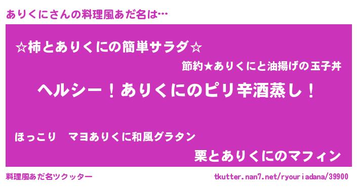 | 意味不明あだ名 | 『自称ありくに』『ペロリンありくに』 |