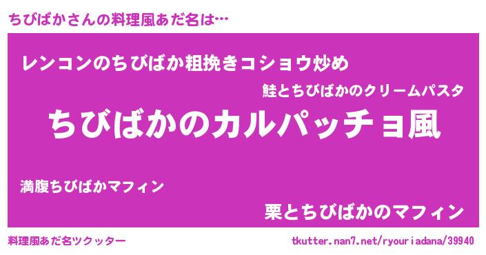 | 女子向けラノベタイトル風あだ名 | 『ちびばかが死なない童話 林檎のちびばかの診療簿』 |