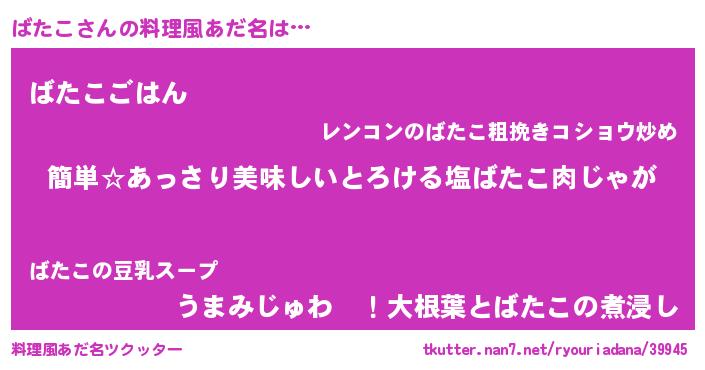 | ピコ太郎風あだ名 | 『ピコバ郎』『ピバ一郎』『バタ一郎』 |