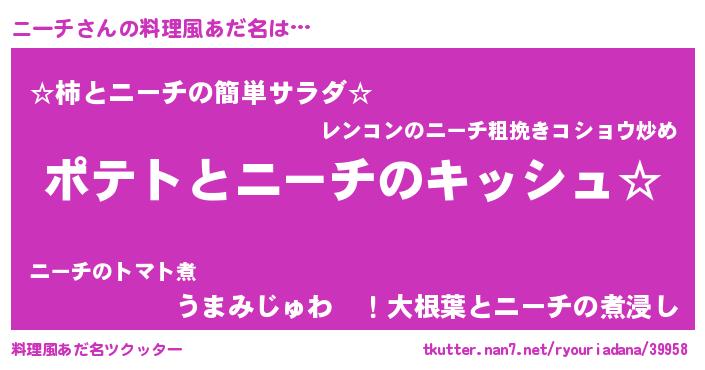 | ピコ太郎風あだ名 | 『ニー次郎』『ピニ四郎』『ニニ太郎』 |