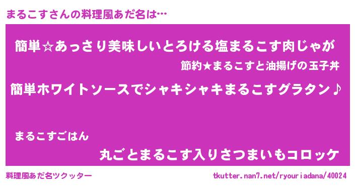 | 男性向けラノベタイトル風あだ名 | 『まるこすの嫁は女の子じゃないと思った?』 |