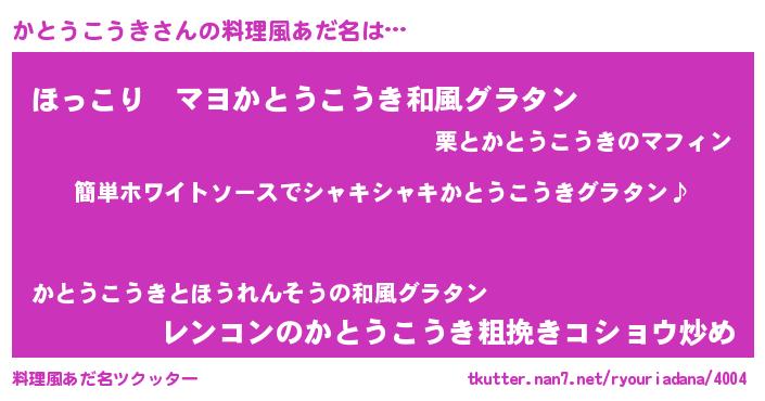 | 男性向けラノベタイトル風あだ名 | 『かとうこうきの嫁は女の子じゃないと思った?』 |