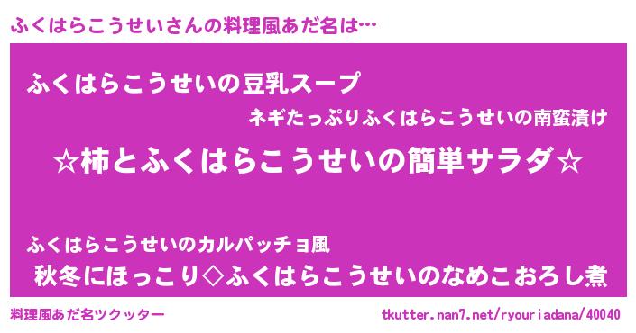 | 胡散臭い通販商品みたいなあだ名 | 『信頼と実績のサプリメント…その名も「ふくはらこうせい」』 |