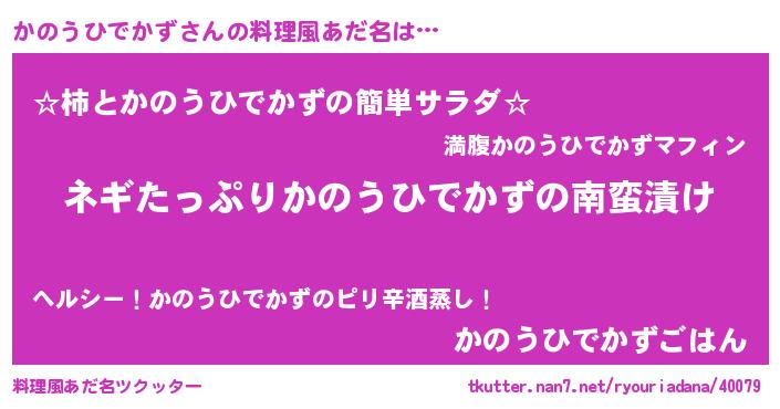 | 男性向けラノベタイトル風あだ名 | 『カノウヒデカズアートオンライン』 |