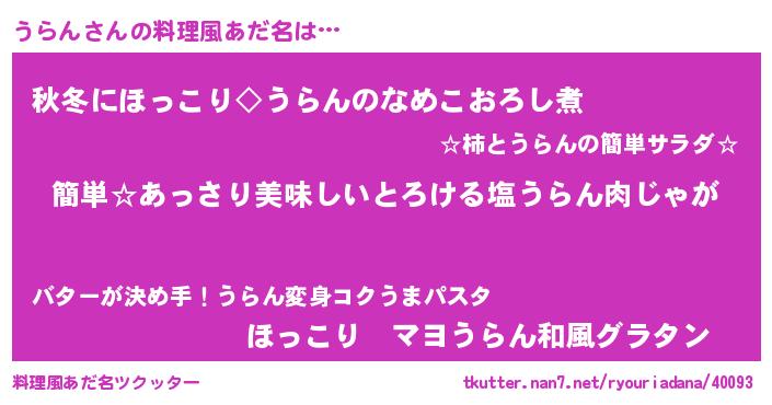 | 胡散臭い通販商品みたいなあだ名 | 『前代未聞の健康食品…その名も「うらん」』 |