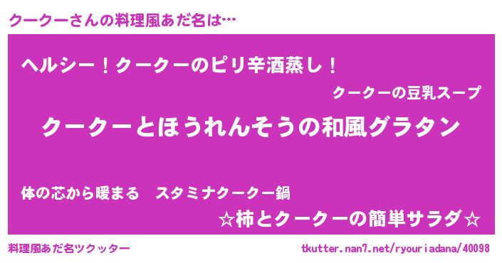 | 意味不明あだ名 | 『ニラ科クークー属』『自称クークー』 |